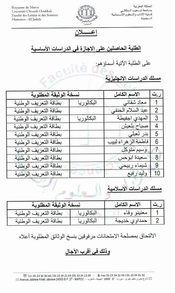 إعلان خاص بالطلبة الحاصلين على الإجازة ألأساسية: